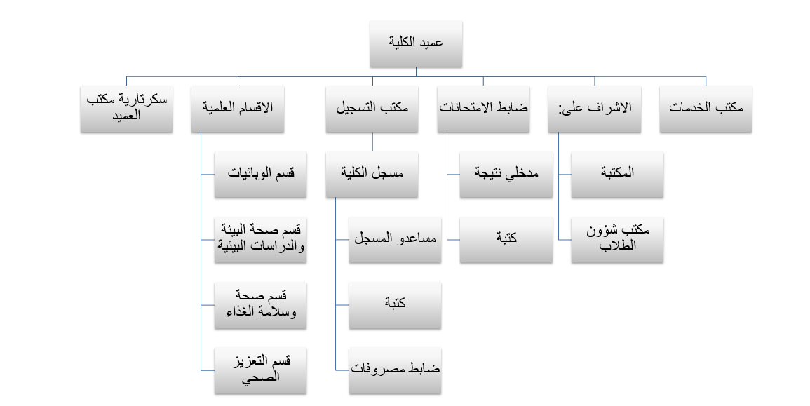 The following diagram illustrates the organizational structure of the faculty, noting that there are units affiliated with central deanships, supervised by the Dean of the faculty in full coordination with the respective central deanships.