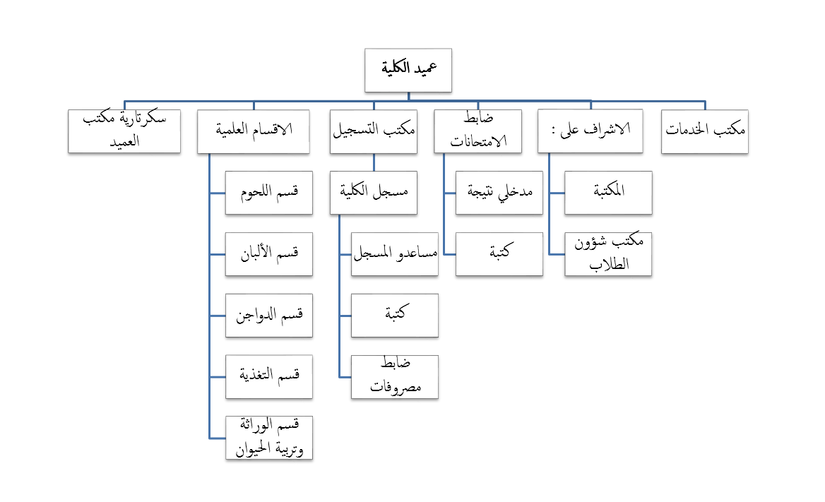 The following diagram illustrates the organizational structure of the faculty, noting that there are units affiliated with central deanships, supervised by the Dean of the faculty in full coordination with the respective central deanships.