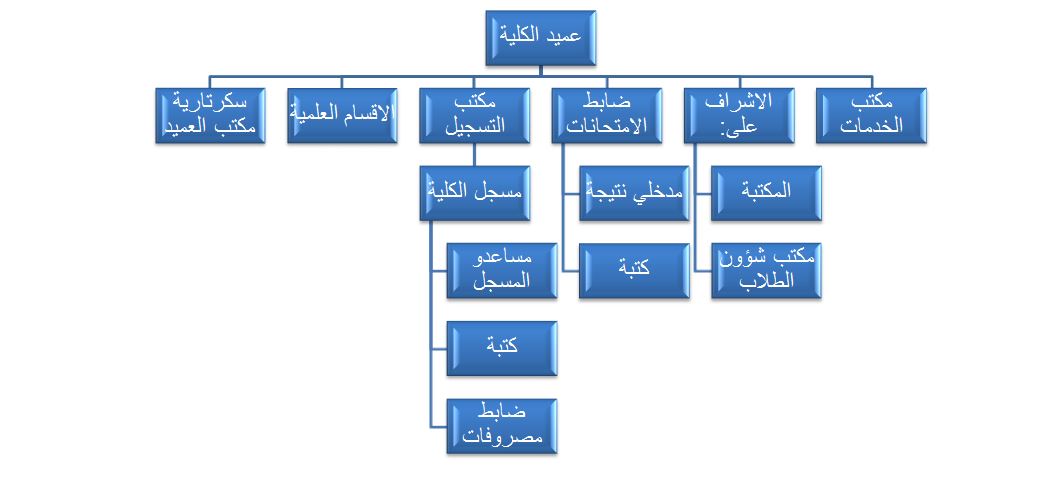 The following diagram illustrates the organizational structure of the faculty, noting that there are units affiliated with central deanships, supervised by the Dean of the faculty in full coordination with the respective central deanships.